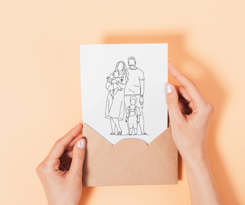 Stuur dit jaar iets unieks met onze gepersonaliseerde kerstkaarten! Upload eenvoudig een foto en wij toveren deze om in een stijlvolle lijntekening, perfect geplaatst op een luxe kerstkaart. Of het nu een familieportret, huisdier of een speciale herinnering is, wij zetten het om in een prachtige, minimalistische illustratie die jouw kerstgroet extra bijzonder maakt.
